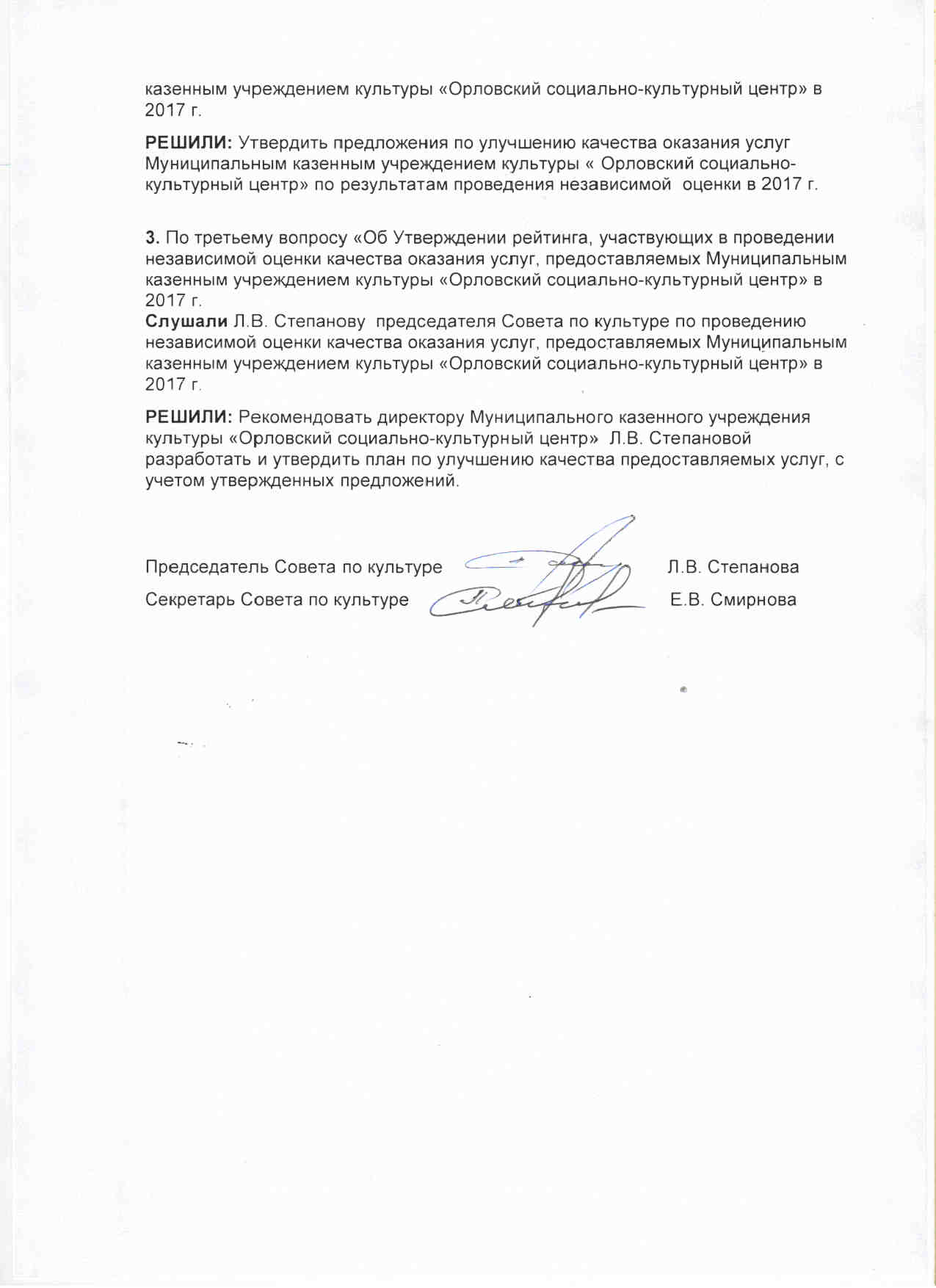 МКУК Орловский СКЦ 05.07.2018 16:43 изменено Нормативные документы: независимая оценка качества (2).xlsФормы для раскрытия инф по водоснаб.docУСТАВ МКУК.docСвидетельство о постановке на учёт.pdfСвидетельство о записи в ЕГРЮЛ.pdfРезультаты независимой оценки качества.docxПРОТОКОЛ от 28.09.2017г. №1.jpg ПРОТОКОЛ от 28.09.2017г..jpg ПРИКАЗ 29.09.2017г. №20.jpg ПЛАН МЕРОПРИЯТИЙ ПО УЛУЧШЕНИЮ КАЧЕСТВА.jpg ПЛАН МЕРОПРИЯТИЙ.jpg Выписка из ЕГРЮЛ 1л.pdfВыписка 4л.pdfВыписка 3л.pdfВыписка 2л.pdfАнкета ОЦЕНКИ КАЧЕСТВА ОКАЗАНИЯ УСЛУГ.docx